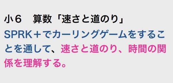 平井氏はプログラミング教育を通して、算数や理科、図工など、自ら考えて工夫するための教育にも役立つと言う。例として、算数の「速さと道のり」への応用の例などをあげた。