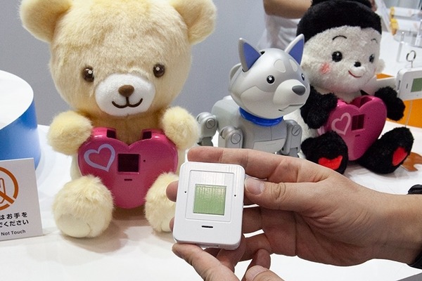 主に女の子が対象だろう2つの可愛いめいぐるみが置かれていて、それぞれハート型の機器をだっこしている。ハート型の機器の中には「IoTコアモジュール」が内蔵されているため、ユーザーはぬいぐるみとの双方向の会話が楽しめる。