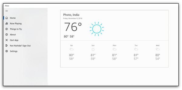 まず、ショートカットキーでAlexaを呼び出して、天気を聞いてみた。Alexaは、イラストとともに音声で回答してくれた。