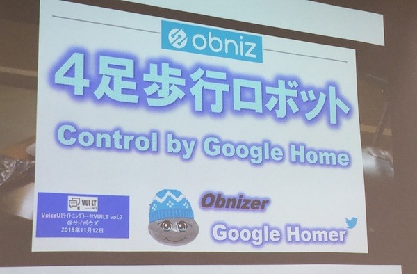 Google Homerさんからは、obnizを使って作った4足歩行ロボットについて紹介しました。