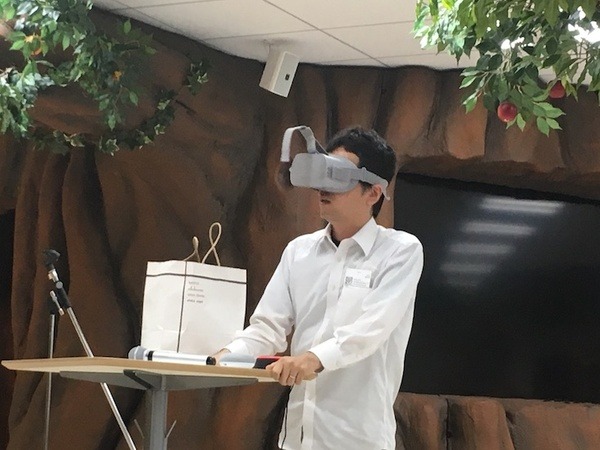 そこでGoogle HomeとIFTTTを使って、この問題点を解決する方法を披露していただきました。ここから、VRと現実をつなげるためにはVUIが有効であるという知見を披露されました。