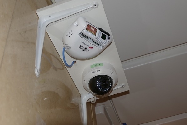 かつ、カメラを使った認識率を上げるために空間内の2点に監視ポイントを設けた。ロボットに搭載したアースアイズのカメラは移動しながらの状態でも不審な動きを認識することは可能だが、止まった状態で観測したほうが精度が上がるため、そうしているとのことだった。