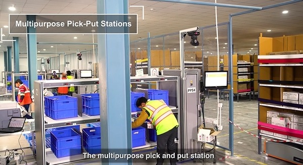 オンラインショッピングの増加により、様々な倉庫では商品の発送業務の迅速化や効率化、自動化が求められている。従来は担当するスタッフがシステムの指示通りに倉庫内の棚を回り、発送予定の在庫商品をピッキングしていた。その歩行距離は平均して一日一人あたり11kmに及ぶケースもあると言う。そこをまず自動搬送ロボット「バトラー」は改善する。バトラーの導入によりスタッフは歩いて棚を回る必要はなくなり、PPSと呼ばれる作業ステーションにいながら同梱する商品のピッキング作業ができるようになった。バトラーがラックごと商品を手元まで運んできてくれるからだ。