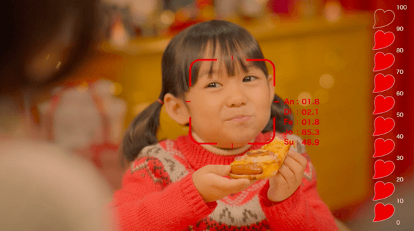 今回のCMでは、株式会社シーエーシー(CAC)の開発した動画による表情分析サービス『心 sensor(ココロセンサー)』を使用し、CM撮影中にピザハットのピザを食べている出演者たちの「しあわせ指数」を計測。