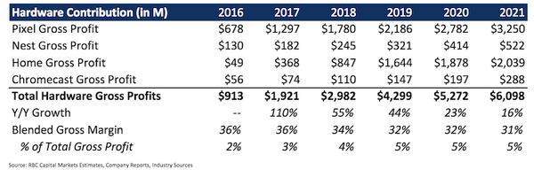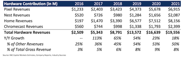 RBC Capital MarketsがGoogleのハードウェア部門の収益予測を発表した。