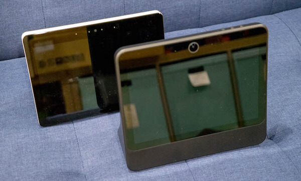 奥が同じディスプレイサイズを持つAmazon Echo Show (第2世代)、手前がFacebook Portal。画面の下にスピーカー部分があるFacebook Portalのほうが正面から見ると大きく見えます。