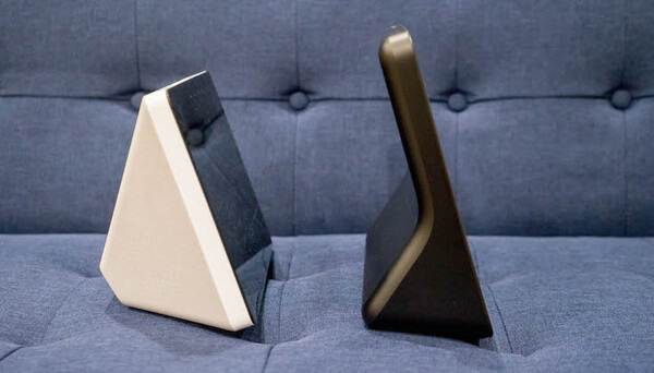 横から見ると、デザインは大きく異なります。サイズはPortalは幅9.84 x 高さ8.20 x 奥行き3.68インチ。Echo Showは幅8.7 x 高さ6.90 x 奥行き4.20インチ。Portalは幅も高さもありますが、奥行きのみ狭い筐体です。
