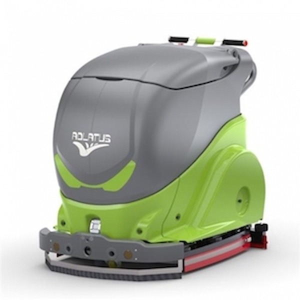 ADLATUSはADLATUS Robotics社が開発した清掃ロボット。対人、対物センサーを搭載し、無人運転で床を洗浄する。設定したエリアを洗浄すると、設置しておいたステーションに帰還し、洗浄汚水の排出、タンクの洗浄を行い、次期運転に備えて、給水、充電を行う。