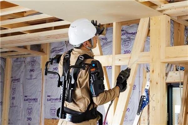 マッスルスーツは、人工筋肉のはたらきで重労働での身体負担を大幅に軽減するウェアラブルロボット。電力を使わず、最大25.5kgfの補助力で装着者の動作をアシストしてくれる。