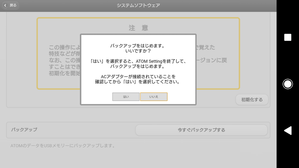 ロボットエバンジェリストの西田です。わーわー。1月16日にATOMがバージョンアップし、「バックアップ&リカバリー機能」が搭載されたので、早速USBメモリーにバックアップを取ってみました!