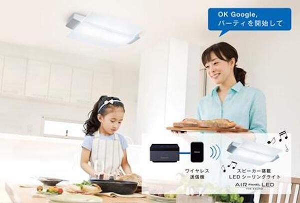 またパナソニック製品独自のメリットとして、同社のLEDシーリングライト「AIR PANEL LED THE SOUND」との連携機能がある。「あかりの操作」と「光と音の一括操作」が音声で可能になるというもの。「OK Google,くつろぎを開始して。」と話しかけるだけで、シーンにあわせた光と音が天井から降り注ぐという。