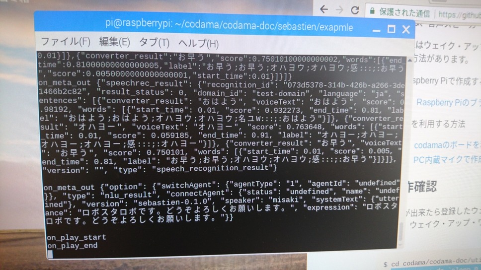ウェイクワードを言ったあとに、何も反応がないのでちょっと不自然ですね。サンプルを改造して、「なんですか?」とか喋らせると良さそうです。あとは、目を光らせたりしたいなー。