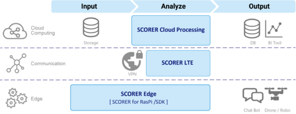 SCORERは、カメラや映像に関する最新技術をブロックのように組み合わせ「安く・早く・簡単」に映像解析システムを開発できるプラットフォーム。同プラットホームの特徴は、大手システム開発企業やAIベンチャーなどが保有している、高性能・高機能な映像解析技術、ネットワーク技術、クラウド技術、組込み技術の提供を受けることで、これらを一元的に管理利用することができる。