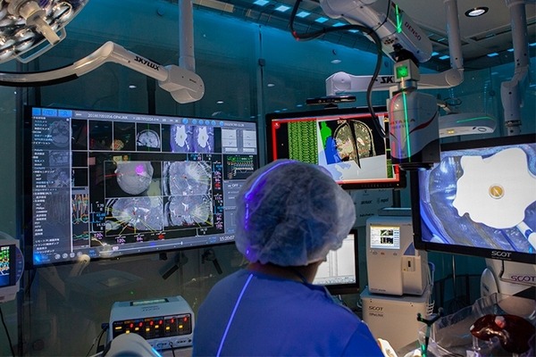 スマート治療室「SCOT」(スコット)は、Smart Cyber Operating Theaterの略で、手術の内容が映像で記録されるほか、手術をナビゲーションするしくみや高精度な手術に必要な情報や画像の提供、手術中でもMRIを撮影して患部の確認を適宜行うなど、効率的で正確な手術が可能になる。