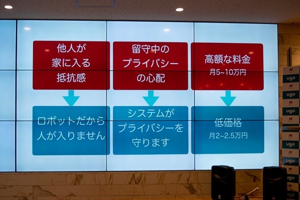 ロボット自体はレンタルで提供。通常家事支援サービスでは5万円から10万円がかかるというが、ugoは月額2万円から2万5千円程度で提供を予定。週に数時間程度の家事支援を行なう。
