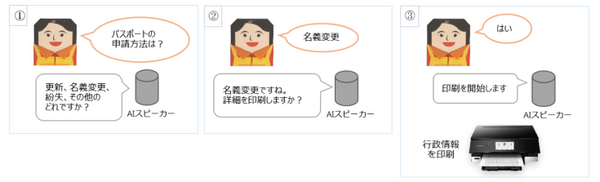 得られた情報はメールに送信されるとともに、「印刷しますか?」と尋ねられ、「はい」と回答するとキヤノン製のインクジェットプリンターで印刷が行なわれる。行政情報が音声で得られてメールで送られるだけでなく、印刷までできるため、幅広い年代が利用しやすいことが期待されている。検証する端末は、Alexaアプリが入ったスマートフォンの他、Amazon Echo Dot、Echo Spot、Echo Showが予定されている。
