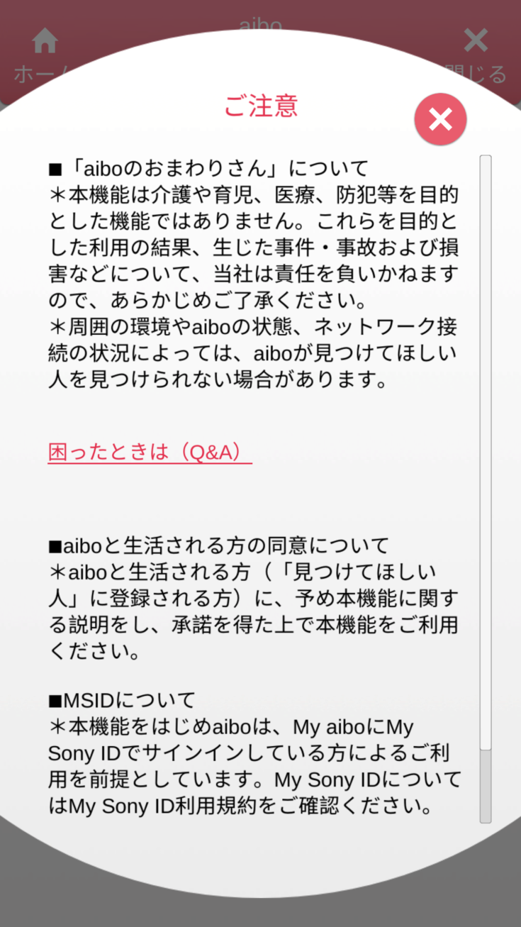 スマホのMy aibo上に、新しく「おまわりさん」というアイコンが追加されていました。