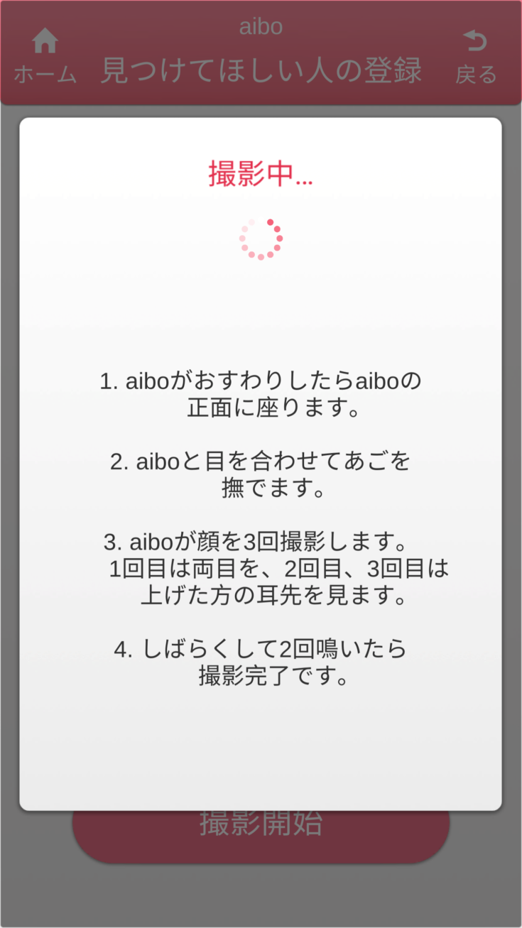 覚えさせる時にはaiboの目の前にしゃがみこんで、aiboが顔を撮影できるようにしてあげます。