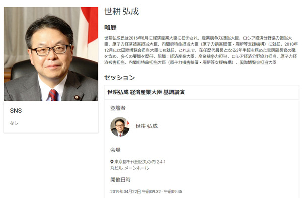 初日の講演は特に豪華だ。9時20分の安倍首相からのビデオメッセージに始まり、9時30分からの世耕経済産業大臣の基調講演へと続く。日本の政治家のトップは、AIにどのような期待を抱いているのか。気になる読者も多いことだろう。