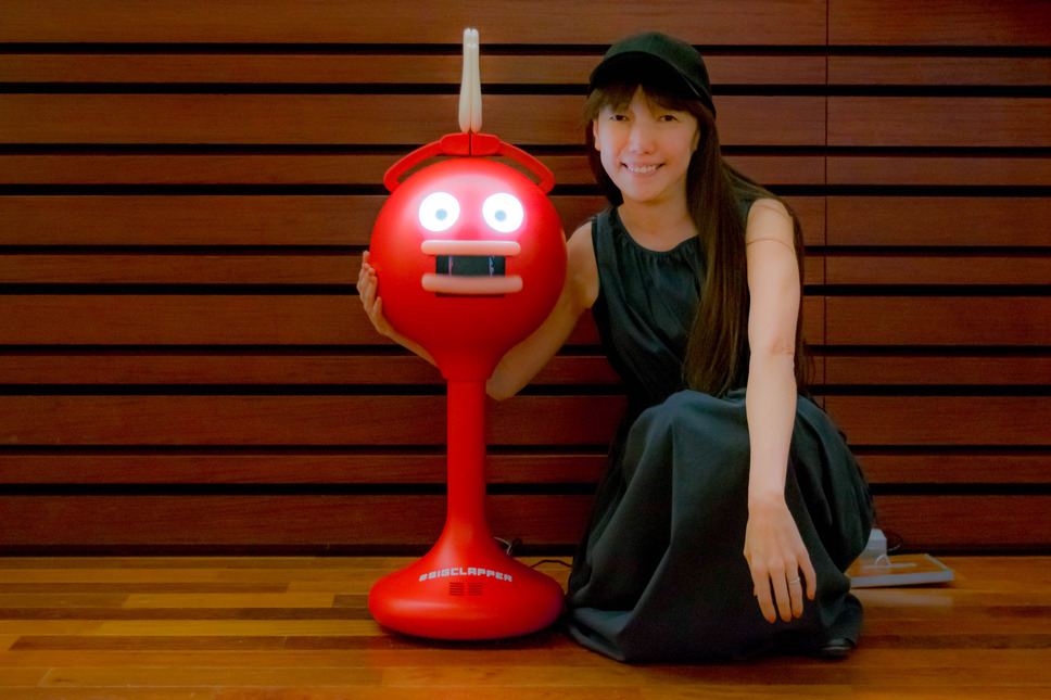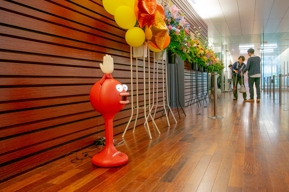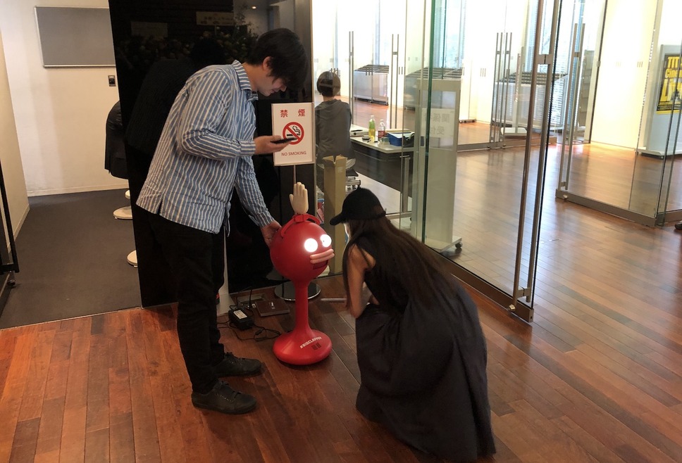 ビッグクラッピーには、人感センサーで人が近寄った際に自動で声かけをする機能と、スマホアプリから操作をするパフォーマンスモードがあります。パフォーマンスモードでは幸せなら手を叩こうのパフォーマンスを流したり、運動会の曲のパフォーマンスをさせることができるのですが、実は当日10mほど離れたところから太田光代さん自らがスマホアプリを操作し、ビッグクラッピーを操っていました。来場された方々も気づかなかったでしょうね。