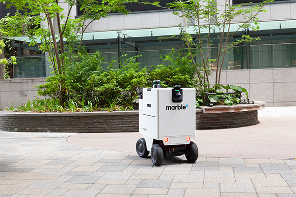 Marble社のロボットは高性能のレーザーセンサー(LiDAR)と複数のカメラを活用した独自技術により、雨天走行も可能な屋外・屋内双方での自律走行をシームレスに行うことができる。三菱地所はこれを世界最高レベルの自動運搬ロボットと評価している。