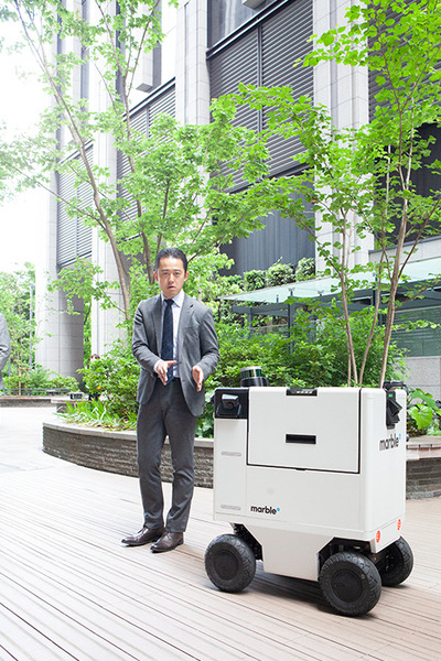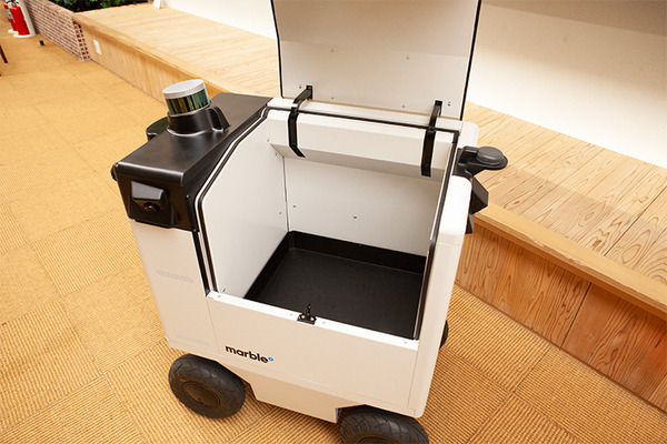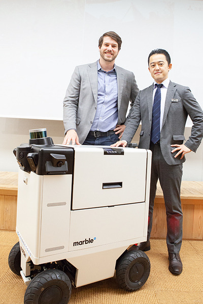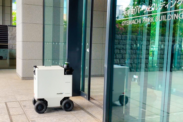 その一環として、三菱地所は5月17日、アメリカのロボット開発企業Marble(マーブル)社が開発した自動運搬ロボットの自律走行実証実験を東京・大手町にて実施し、その様子を報道関係者に公開した。この自動運搬ロボットはサンフランシスコでマーブルが実験実験を重ねてきた製品で日本では初公開となる。最大の特徴は屋外と屋内をシームレスに、スムーズに自律走行すること。予め、専用のマップを作成しておけば、広い範囲でもカバーできる。