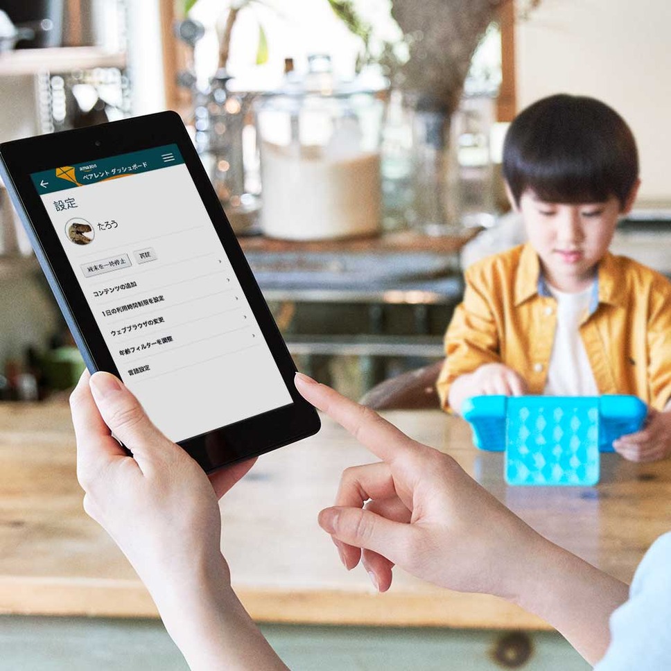 タブレットにはHD720pのフロントカメラが搭載されているため、友人や家族とビデオチャットを楽しむことができ、また写真を撮って共有することもできる。Fire7で撮影した写真は容量無制限のクラウドストレージで保存することも可能だ。