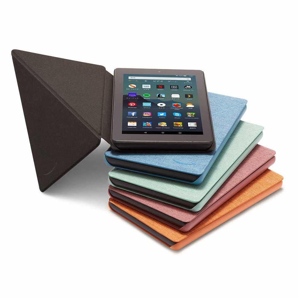 Fire 7 の純正カバーも販売される。価格は2,690円(税込)。縦および横方向いずれもタブレットを立たせることができるものだ。カバーの色はセージ、チャコールブラック、プラム、サンドオレンジ、トワイライトブルーの5種類。