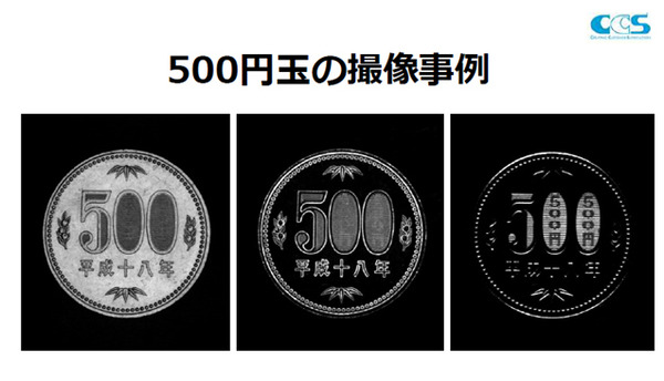 ただ、肉眼で判断できないものはAIでも判断することは難しいため、判断の精度が照明の選択で変わることを500円硬貨の撮影などを例にわかりやすく解説しました。