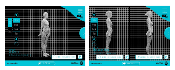 アプリケーションには、3Dスキャンしたユーザーの計測データを細かく一覧で見ることができる「3Dスキャンボディデータ」や、現在と過去の体型データの比較ができる「Before/Now比較」、計測データをもとにユーザーの体型に合うインナーウェアを提案する「レコメンド」などの機能が搭載されている。