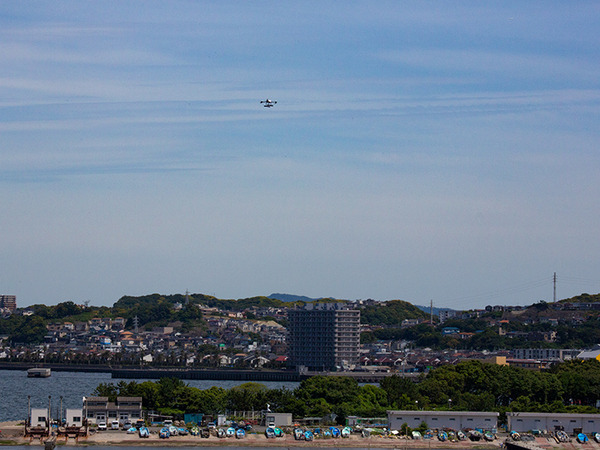 ドローンは海を渡って猿島に向かう。その距離は片道約1.5km。高度は約40m、時速36km/hで飛行する。約5分の飛行時間だ。