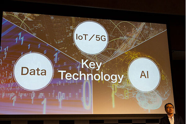 キーテクノロジーとしては、IoT/5G、データ、AIの3つを上げた。従来はロボットも含まれていたが、この日のテーマとしては含まれなかった。
