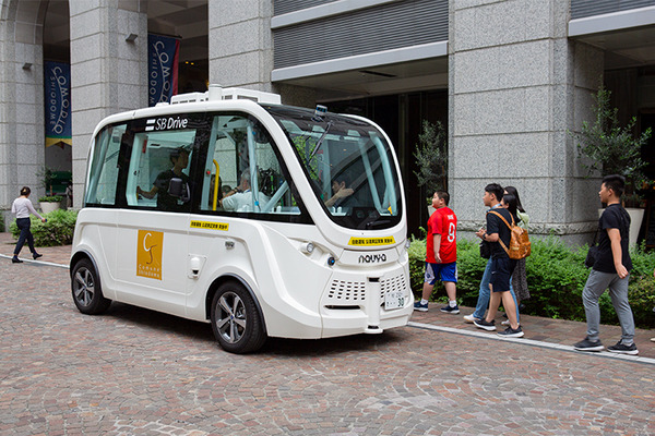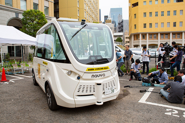 ソフトバンクの子会社、SBドライブはフランスNavya社製の自動運転電気自動車「NAVYA ARMA(ナビヤ アルマ)」を日本の道交法にあわせたカタチで改造し、特別な認定を受けて、実証実験のために公道を走るナンバーを取得。本日より東京汐留近くのイタリア街の公道を走らせる。