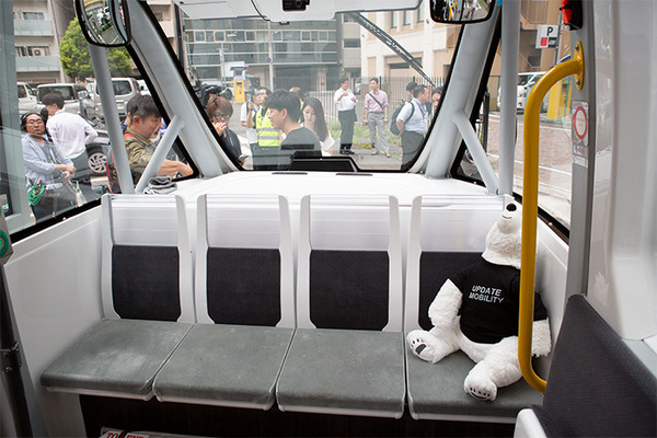 実証実験は3日間、1日8便(各便6名)、約150人が試乗する予定。対象はマスコミ、大学や研究機関の有識者、認定に関わった政府や警察など関係者が試乗する。一般の乗客は乗れない。早速、ロボスタ編集部も乗せてもらい、公道を走るバスを撮影してきた。