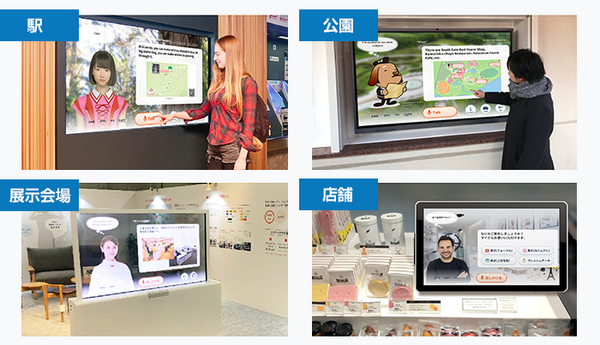 多言語対応により、訪日外国人への案内がスムーズにでき、案内スタッフの人件費削除にもつながる同サービスは、音声とタッチに対応したユニバーサルなデザインとなっており、3DCG/実写キャラクターの表情と会話内容の連動により、まるで人と話しているような自然なコミュニケーションを実現する。