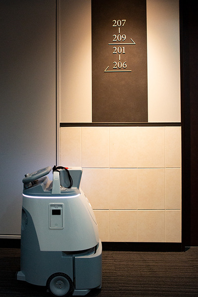 ロボットが清掃できる範囲は限られていますので、明確な役割分担が重要です。チェックアウト後は部屋が散らかっていたらまずは片付ける必要があり、連泊のお客様は床に荷物が置かれているケースが多いので、クオリティ面を考慮すると人手で丁寧に行うことが第一で、客室内をロボットで清掃することは当分、予定していません。