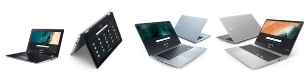価格は、Acer Chromebook 315(279.99ドル)、Acer Chromebook 314(279.99ドル)、Acer Chromebook Spin 311(329.99ドル)、Acer Chromebook 311(249.99ドル)。