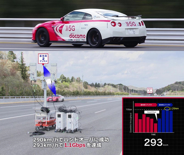 ドコモはこれまでに、約200~300km/hでテストコースを走行する自動車を用いた5G通信実験を段階的に行ってきた。