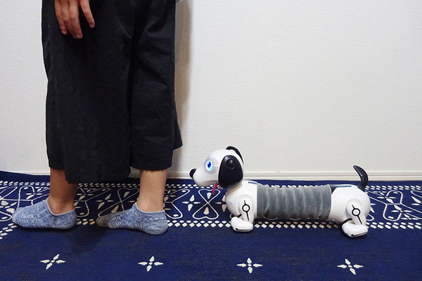 本体は、アコーディオンのように伸び縮みする腹部と、舌や耳、しっぽが動作。「ワンワン」と吠えるタイミングや、身体の動きの組み合わせによっては、本物の犬のように愛らしく動作するという。