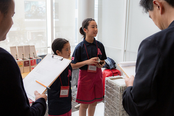 最終審査は、ステージに登壇してのプレゼン形式ではなく、各出場者が作品を展示しているテーブルを審査員団が回り、あれこれと聞いてまわる方式が採用されました。そうすることで、子ども達がどのくらい自分たちでやったのかが具体的に聞けるとともに、プレゼンが得意ではない子どもからもいろいろな話が聞けるという考えからです。