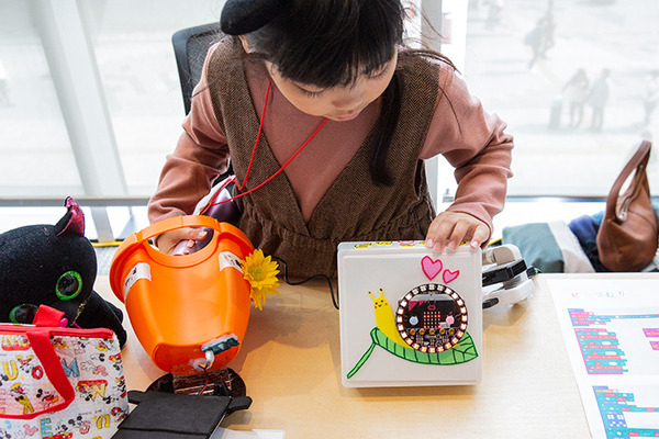 制作は小学校2年生の越智千晶さん、お兄ちゃんにプログラミング等を教えてもらいながら作りました。