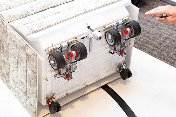 他にもたくさんの力作が展示されていましたが、小中学生らしくて印象的だったのは、今回出展されたいくつかのデバイスやパーツ等、メカ部分にレゴプロックが使われていたことです。カメラ機器やセンサーのホルダーやステイ、更にはアクチュエター付きの車輪ユニットまでにもレゴが使われていました。