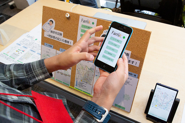 3人の子どもを連れたお母さんが病院で問診票を苦心して書いているのを見て、もう少し簡単になったらいいのに、と感じたところからアイディアが浮かんだそうです。制作したのは小学校6年生の澁谷知希さんです。