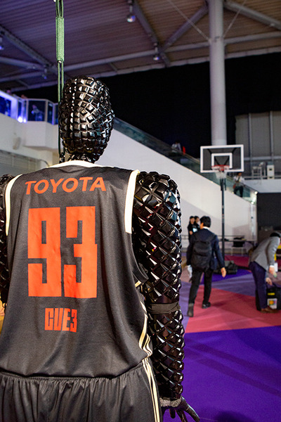 トヨタ自動車ブースにはおなじみの「HSR」と「TH-3」がお仕事をしていた。「TH-3」とは「あっち向いてホイ」をしたり、握手して楽しむことができる。「TH-3」は遠隔ロボットなので、操縦しているのは人間。もちろん見た目はロボットなので、ロボットを普通に遊んで楽しむ、新しい感覚が味わえる。