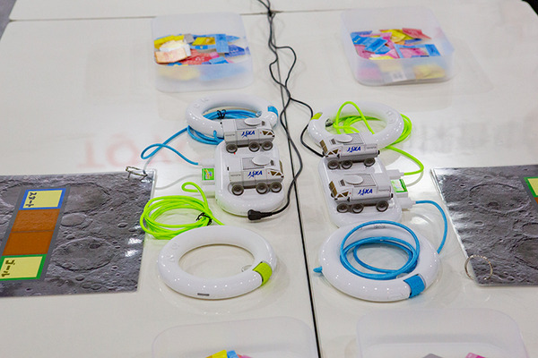「Out of KidZania in TMS」内のトヨタのコーナーでは、ソニーのあそんで学べるロボットトイ「toio」(トイオ)を使って、子どもたちがプログラミングを学びながら月面探査車をドライブ体験できる。