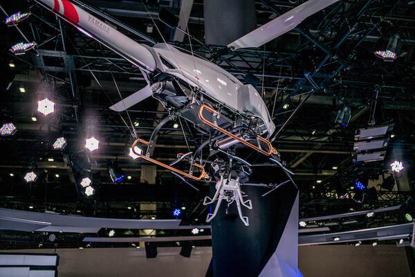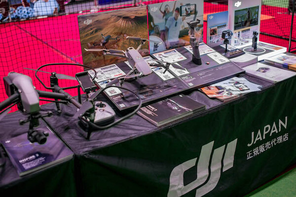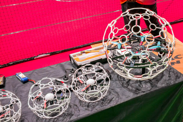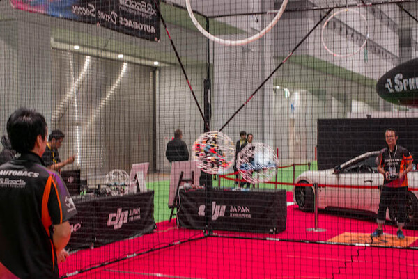 大型ドローンやホビー用ドローンなど。ドローンが対戦するデモも行われていました。