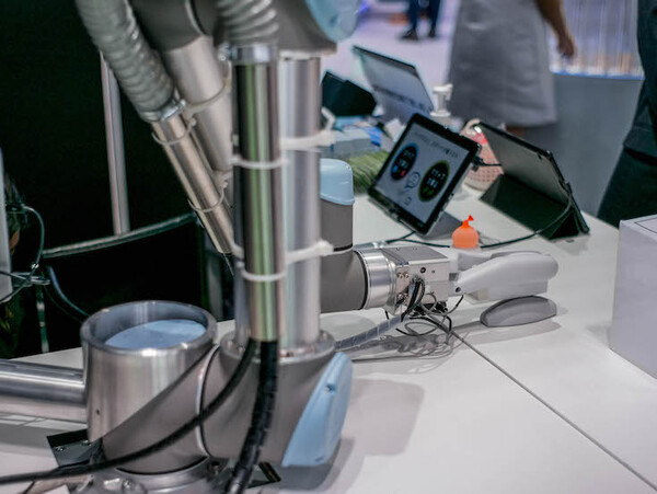 アーム型ロボットも会場にいました。どちらもユニバーサルロボットのものでした。