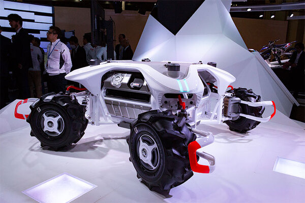 東京モーターショー2019のヤマハ発動機のブースでは「Land Link Concept(ランド リンク コンセプト)」というEVモビリティを特別出展している。インホイールモーター式の4WD(四輪駆動)で4WS(四輪操舵)、自律移動できるUGV(無人走行車)だ。