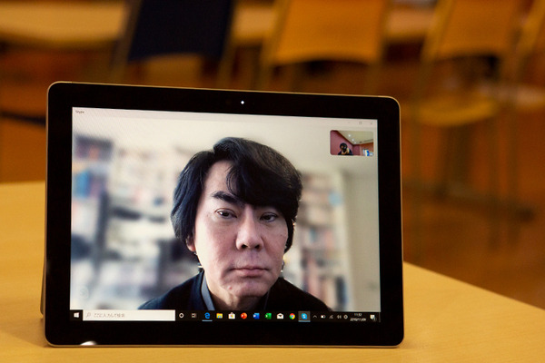 記者会見には漱石アンドロイドの開発に携わった大阪大学の石黒浩教授もスカイプで参加した。