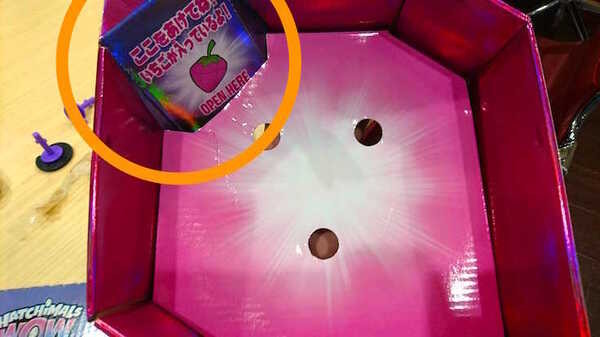 紙をくり抜いたら、タマゴを固定しているのピンを3つ外します。ピンを外すとウーモが目を覚まします。
